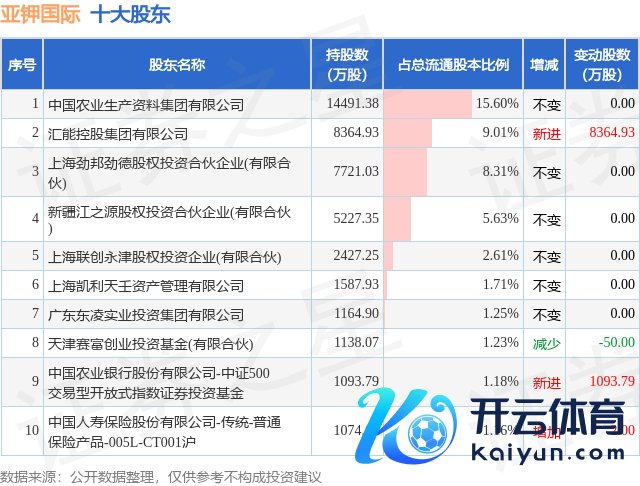 字据亚钾海外2024年三季报公布的十大鼓吹确定如下:kai云体育app官方下载