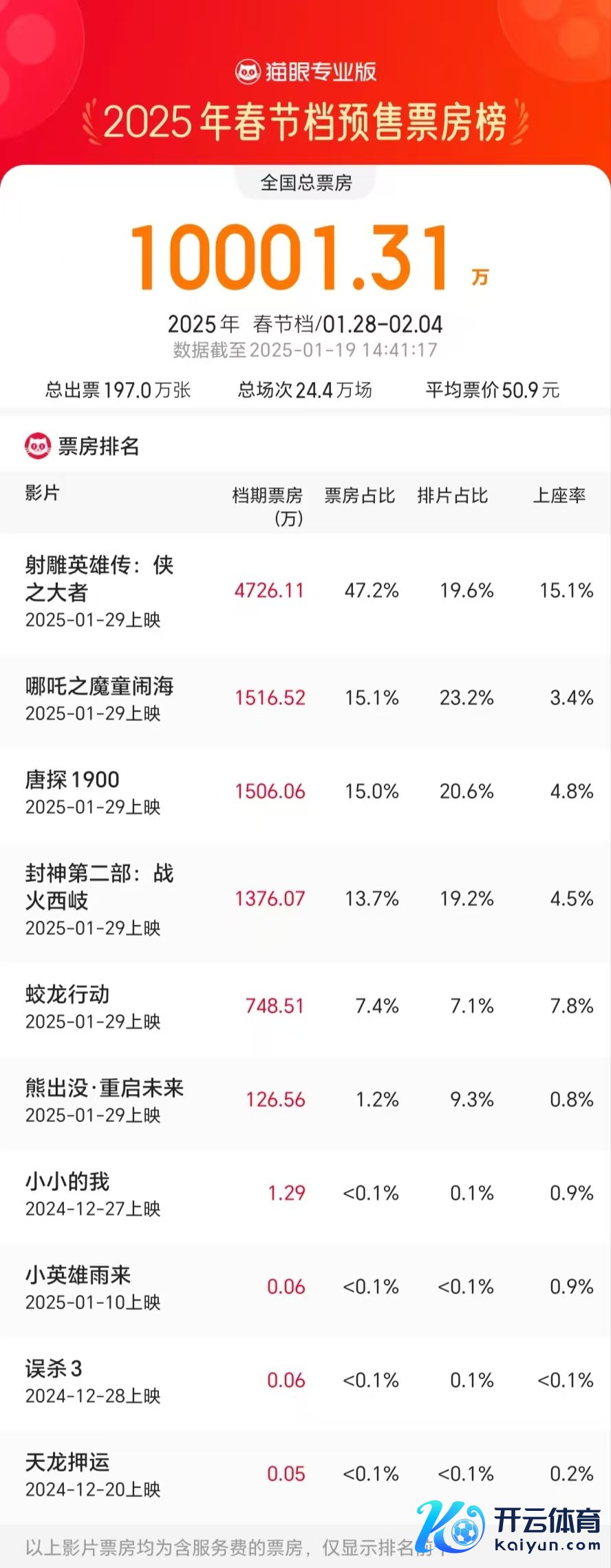 2025春节档预售票房破亿 图据猫眼专科版数据