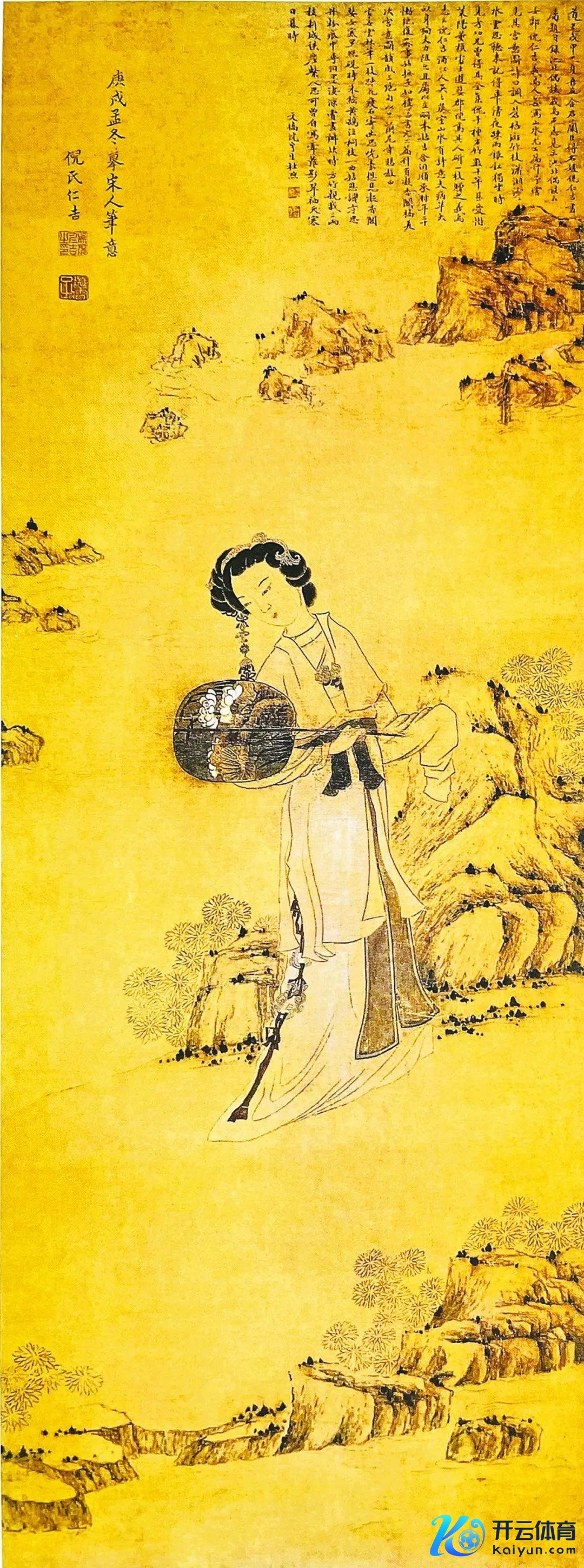 4、画:仕女图,125×47㎝,作于清康熙庚戌(1670年),原藏浦江县博物馆,现藏浙江省博物馆。